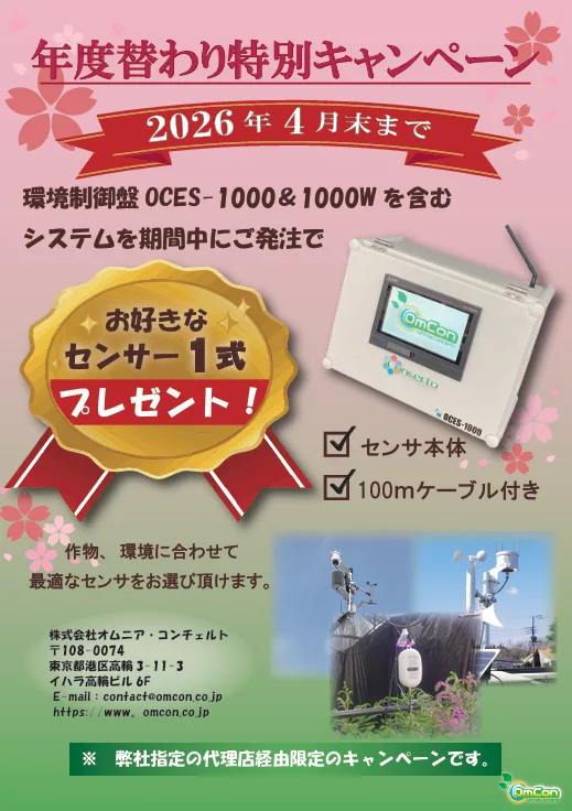 2026年4月末までに、環境統合制御盤 OCES-1000/1000W を含む環境監視システムをご発注いただいたお客様へ、お好きなセンサー1式を無償でプレゼントいたします!!